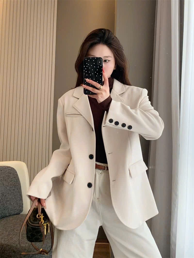Áo khoác blazer ve giả da lộn cổ điển chuẩn hãng #INB_LUE