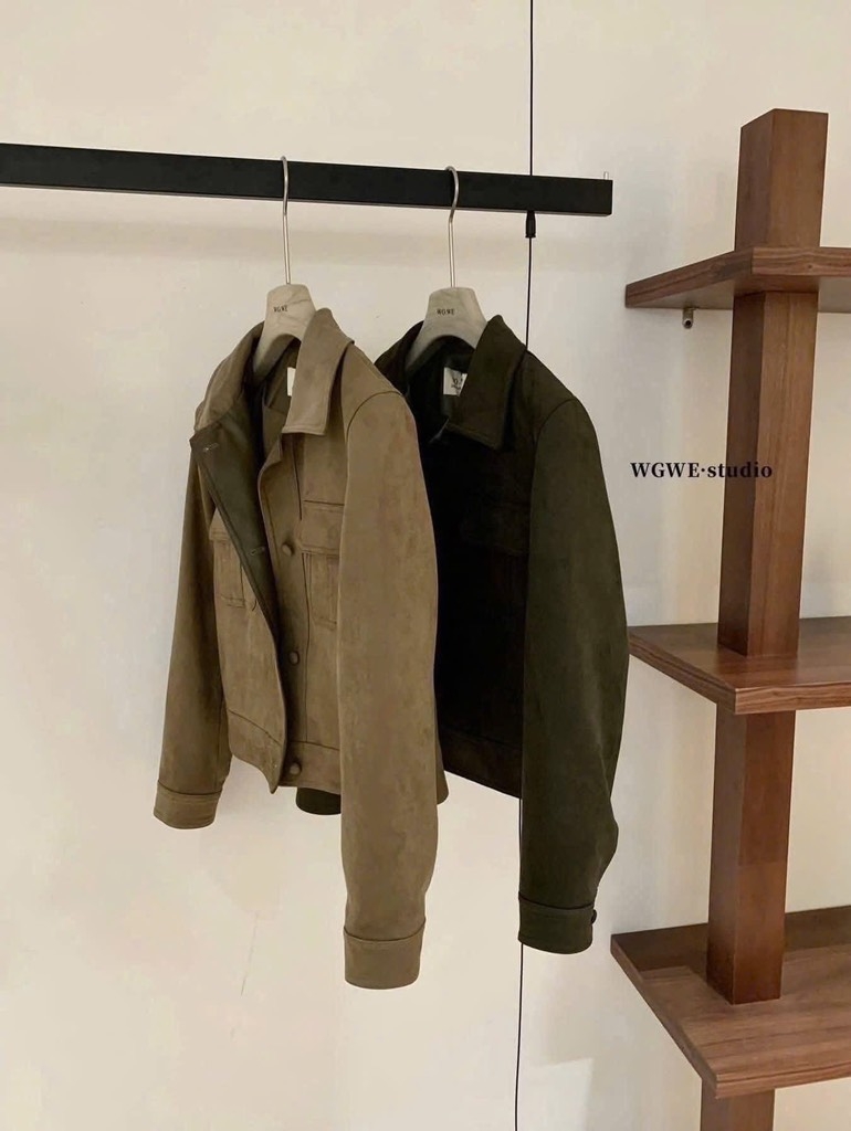 🤎【WGWE】Áo khoác da lộn dáng ngắn phong cách Hàn retro-