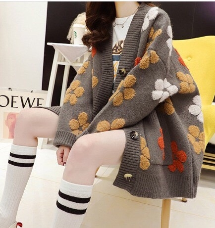Gió mùa về cần lắm e cadigan mặc điệu đà xinh xinh này lắm, khoác áo sang chảnh thật luôn, có hoa làm điểm nhấn cho áo xinh cực kì luôn.
