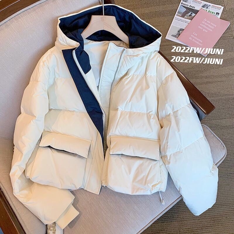 👉Mẫu khoác túi hộp có dây kéo vạt trẻ trung thoải mái, áo dày ấm, màu kem phối đồ đẹp
