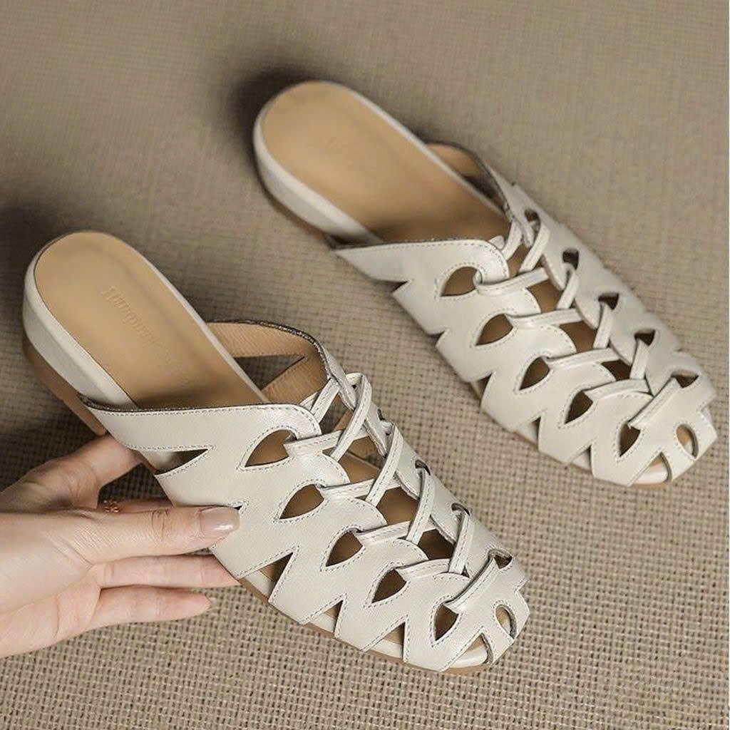 Dép da thiết kế đan chéo tinh tế, chất liệu da mềm mại ôm chân, đế thấp dễ đi, thoải mái cho cả ngày dài. Phong cách tối giản nhưng sang trọng, dễ phối với nhiều loại trang phục.