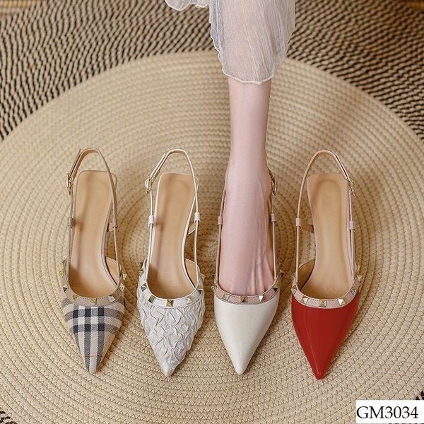 🌈 GOM Giày Cao Gót 6P Mũi Nhọn Đính Đinh Tán Thời Trang Mùa Hè 2023 Cho Nữ#xxx