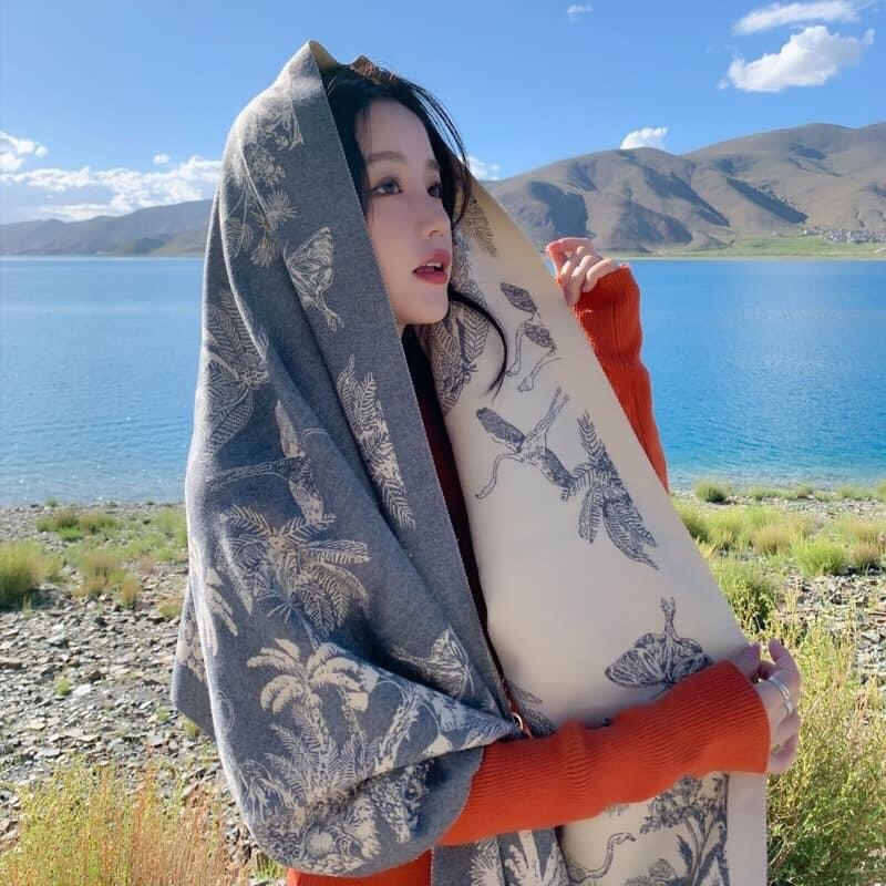 Khăn choàng 2 mặt ghi xám và be cực thời trang. Vtay #xxx