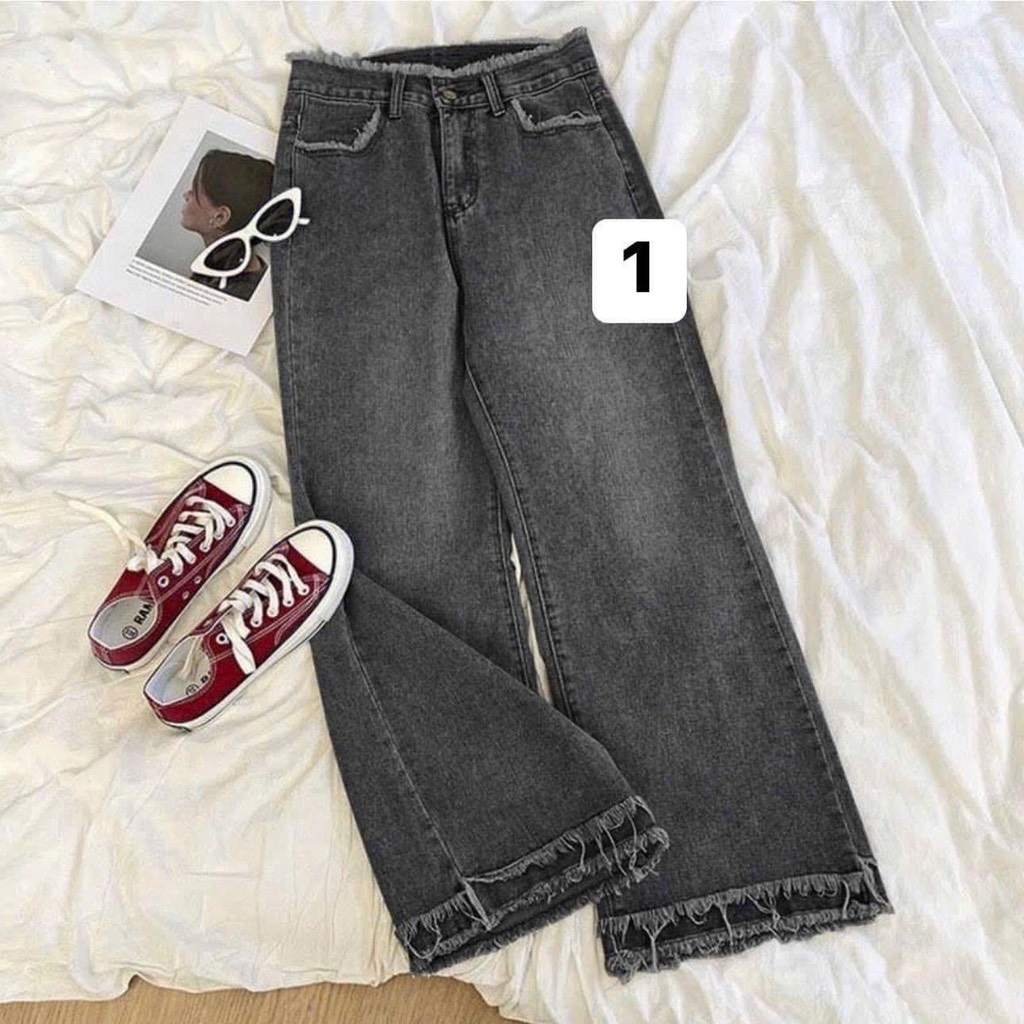 Quần jean suông cạp gấu tua rua mặc siêu ngầu, che bụng che đùi cực đỉnh