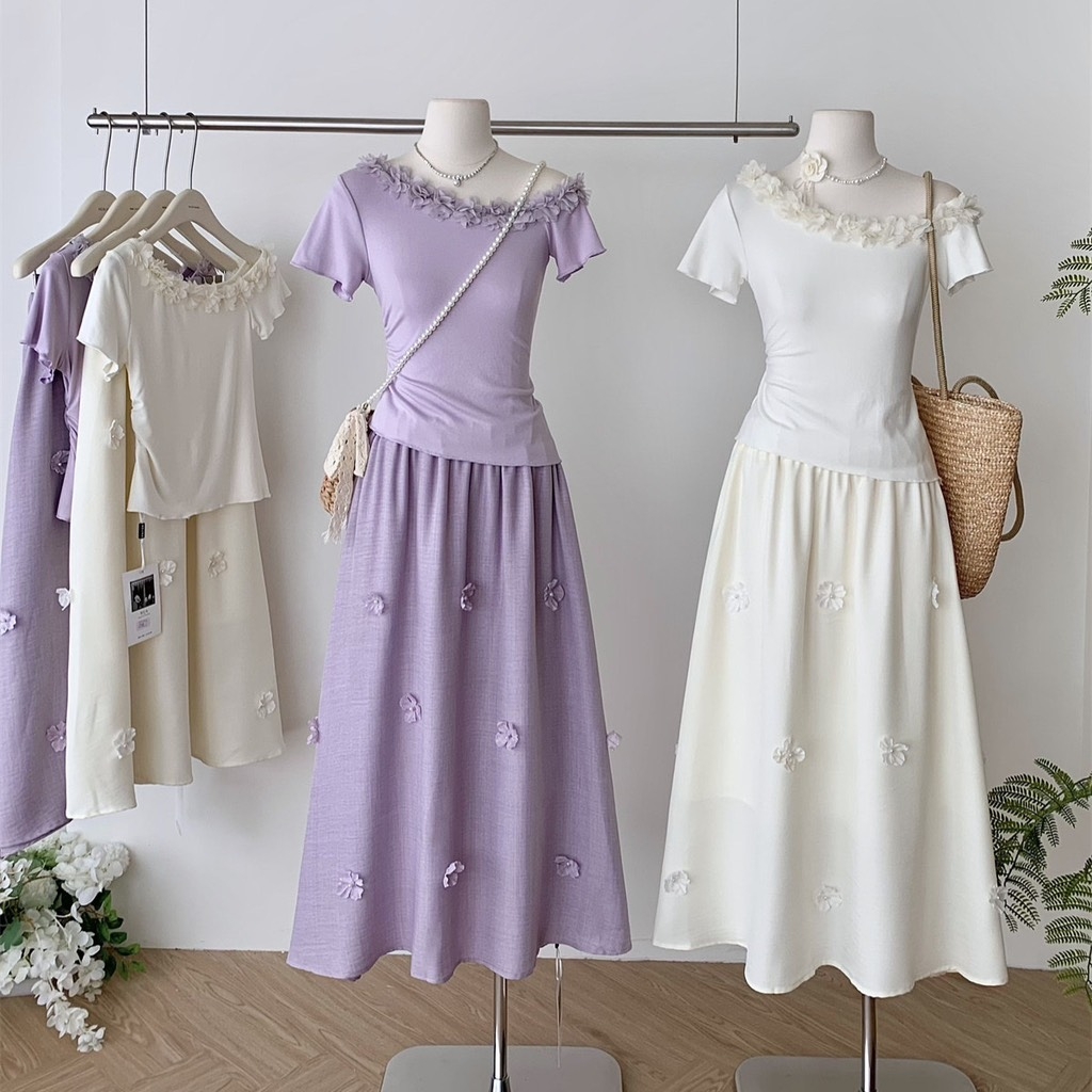 Từng chi tiết hoa nổi 3D được đính kết tinh xảo, mang đến vẻ đẹp sống động và đầy cuốn hút. Sự kết hợp hoàn hảo giữa áo kiểu cách điệu và chân váy dài bay bổng sẽ giúp nàng toát lên phong thái nhẹ nhàng, thanh lịch như một nàng thơ!