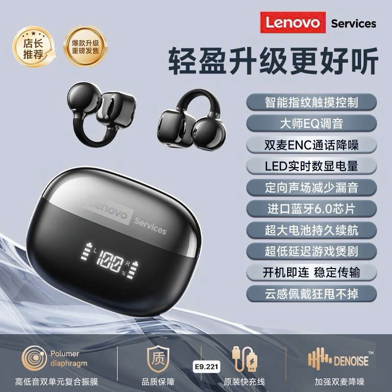 🔥 Tai nghe Bluetooth Lenovo kẹp tai loại không khí dẫn truyền qua xương chất lượng âm thanh cao giảm tiếng ồn thể thao bền bỉ S119 chính hãng.