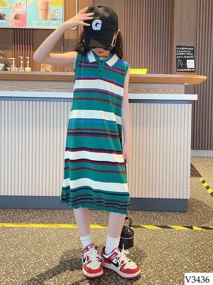 🌈 Váy suông kẻ sát nách cổ polo cho bé